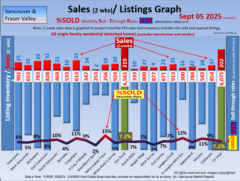 #2 The area east of it, namely of the Fraser Valley Real Estate Board: Surrey to Chilliwack. Here we see the first area has a 30% monthly listing sell-through and the area east of it is currently at a 9% monthly sell-through to read more ..click here
