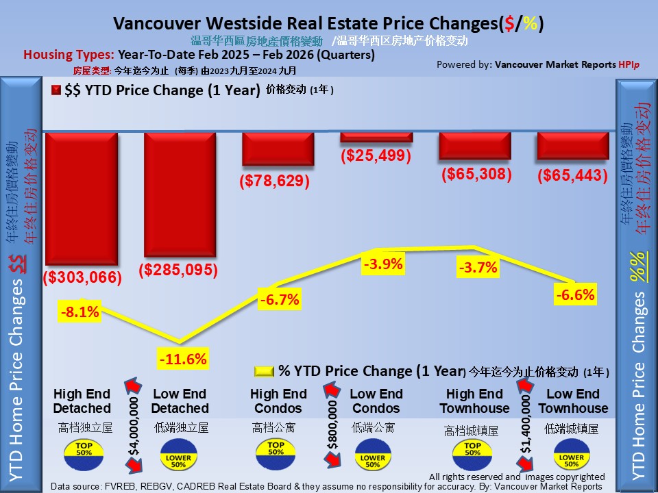 The Vancouver Westside Year-To-Date Home Price Index HPIp (Lower 50%) shows that prices decreased $286,405.