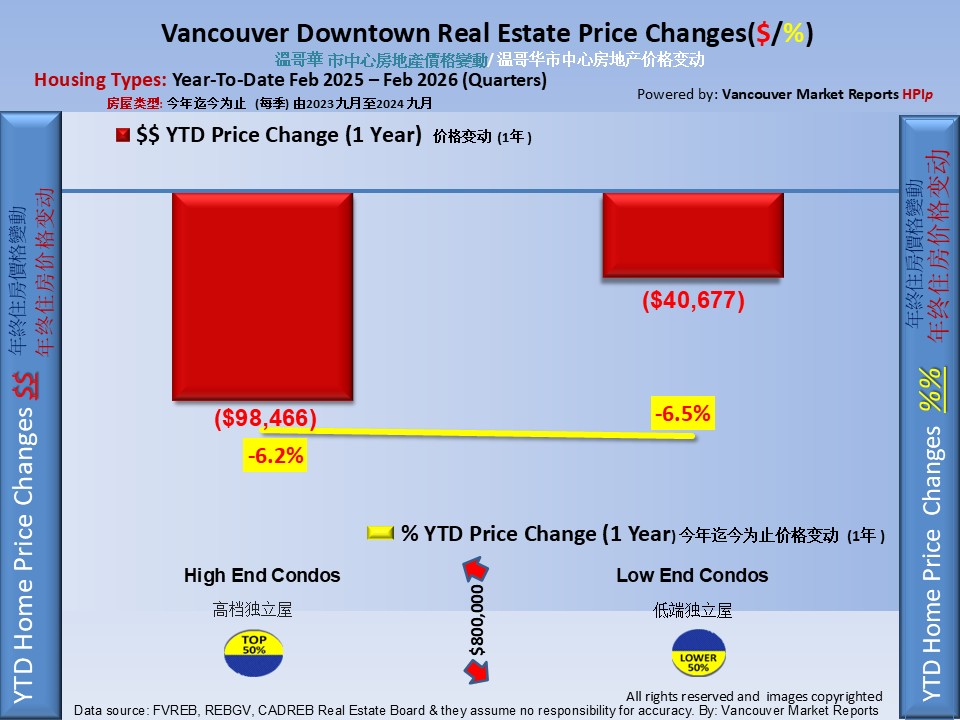 History: The Vancouver Downtown Year-To-Date Home Price Index HPIp (Top 50%) shows that prices increased $71,838.