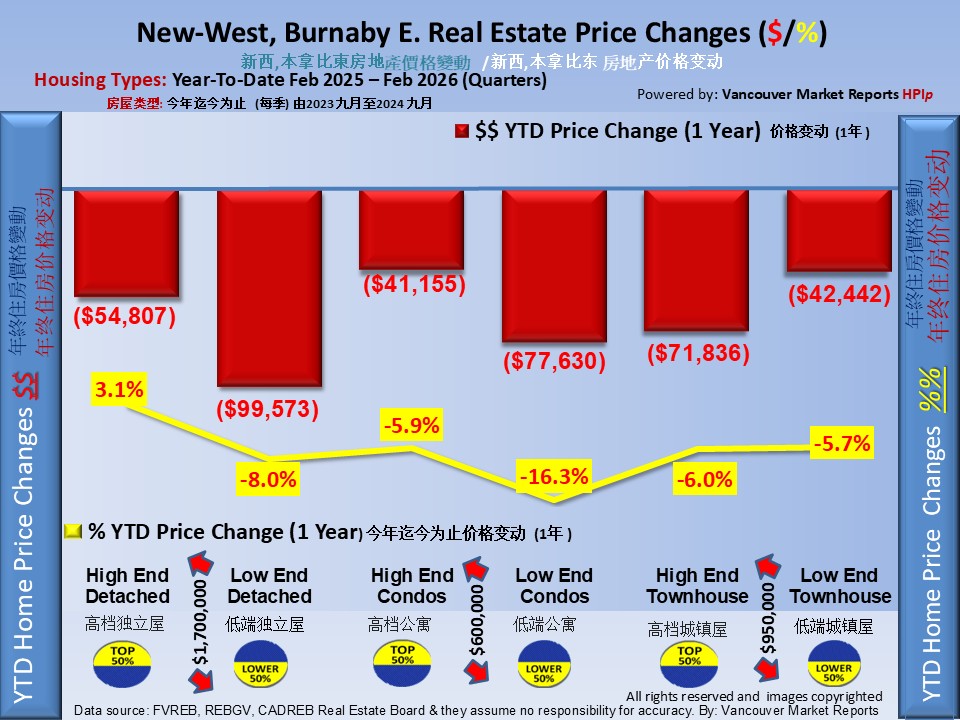 Sales remained slow due to affordability challenges, economic uncertainty, and high inventory, keeping buyers firmly in control. While conditions are still soft, the smaller price adjustment suggests the market may be starting to stabilize compared to late fall. Bottom line: prices are correcting at a slower rate, buyers still have leverage, and the Fraser Valley is holding up better than Metro Vancouver.