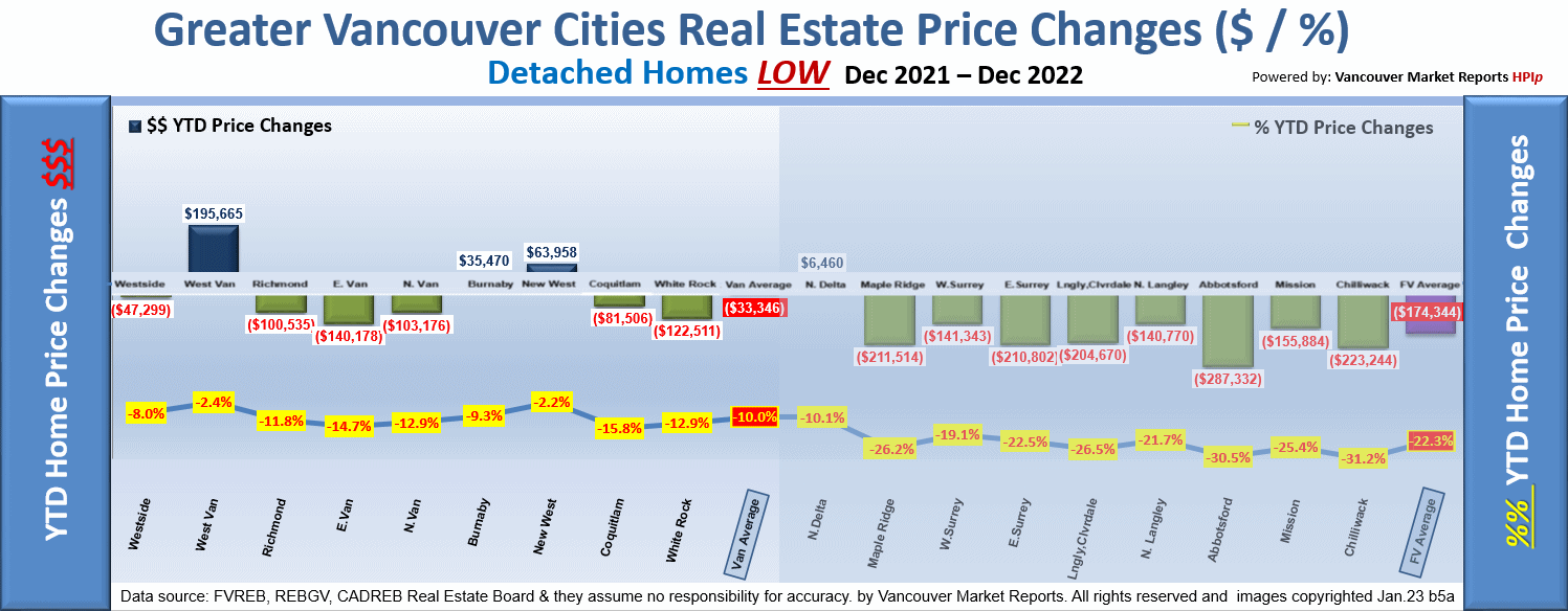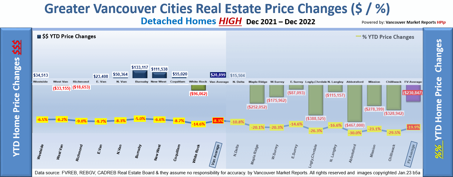 Here on the first Graph the Year to Date for the Top 50% Single Family Housing Market comparing all cities in both areas, Greater Vancouver with Vancouver Westside and West Vancouver consecutively setting highest price changes.