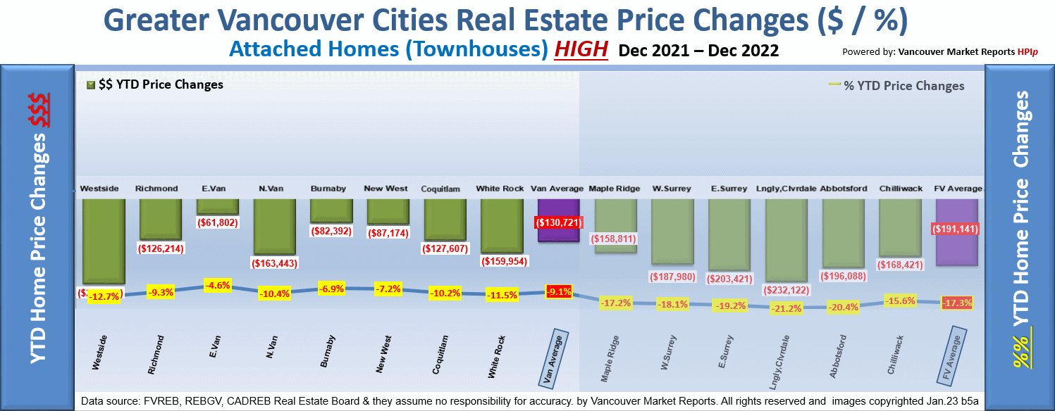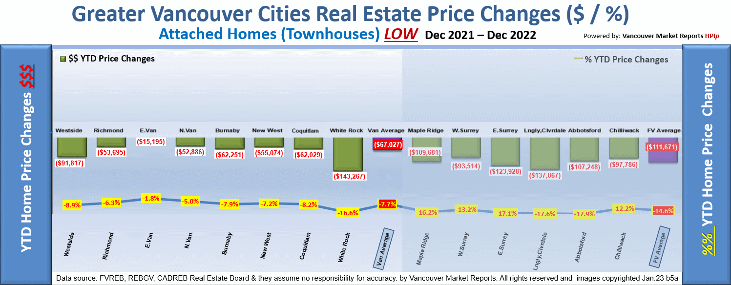 Once again, in both High End and Low End of the Townhouse Markets, White Rock, South Surrey and Langley-Cloverdale increased the most.