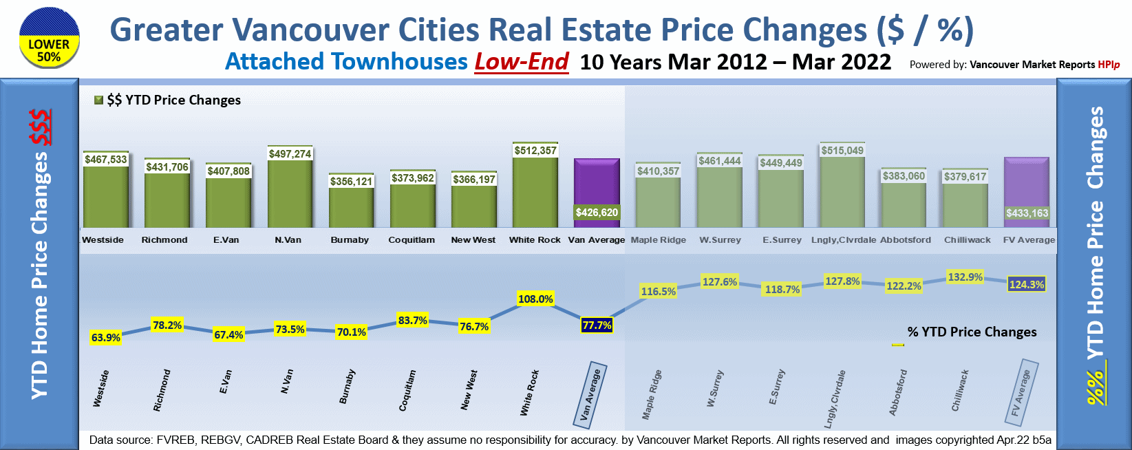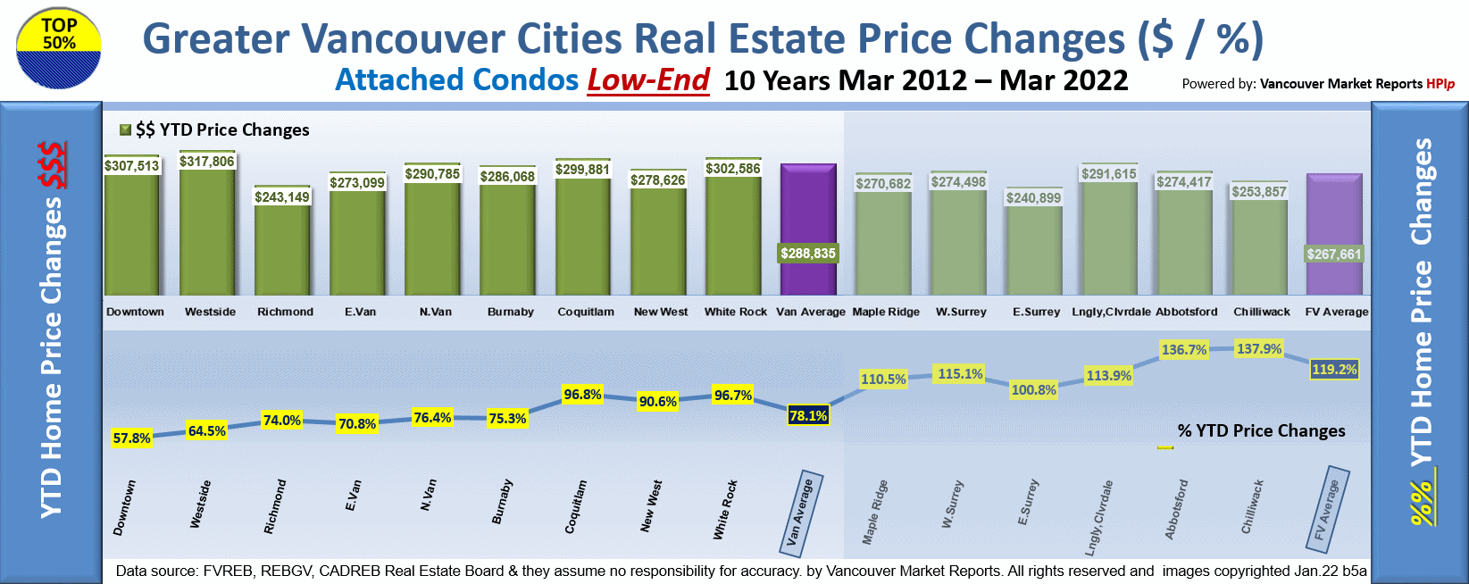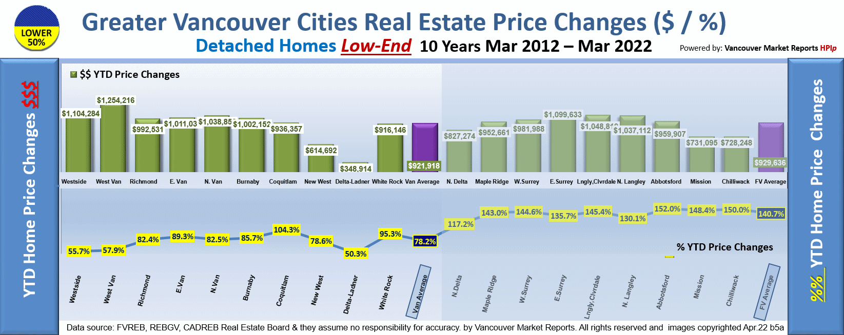 But please notice that the cities with the higher increases are in the Foreign Investment High Demand Areas. We estimate about 5 Billion dollars was injected into these coastal cities in the last year. Most of this cash would come from Mainland Chinese Sources. Typically the cities located west of the Port Mann bridge are in a Job Market Dependent Market and have exhibited much more muted increases.