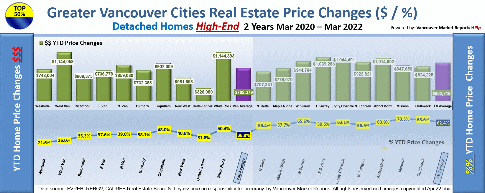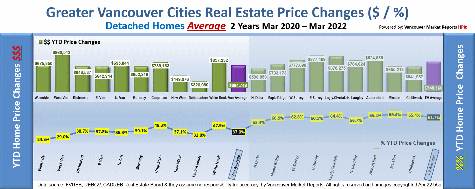 Here on the first Graph the Year to Date for the Average Single Family Housing Market comparing all cities in the Greater Vancouver areas is up an AVERAGE 37% in the last 2 years with White Rock Detached Market setting the ALL TIME price increase record at 48%.