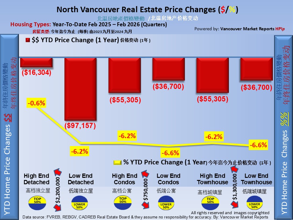 History: The North Vancouver Year-To-Date Home Price Index HPIp (Top 50%) shows that prices decreased $31,670.
