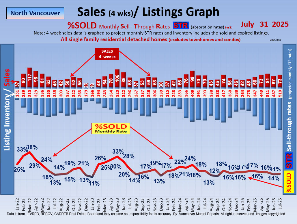 Current: North Vancouver is in a Stable market with its average listings inventory and 11 %SOLD rate.