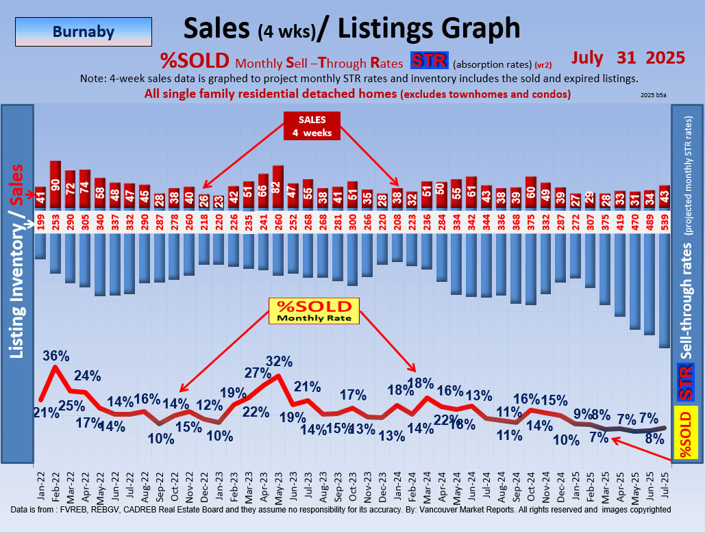 In July, 89% of single-family homes lost value, dropping prices by an average of $17,997. That’s a bigger decline compared to June, when prices fell by $4,025. With many homes still for sale and both buyers and sellers are waiting for clearer trade news, the Fraser Valley remains a buyer’s market.